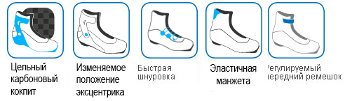 • Прокладки разной толщины позволяют надежно зафиксировать пятку внутри ботинка
