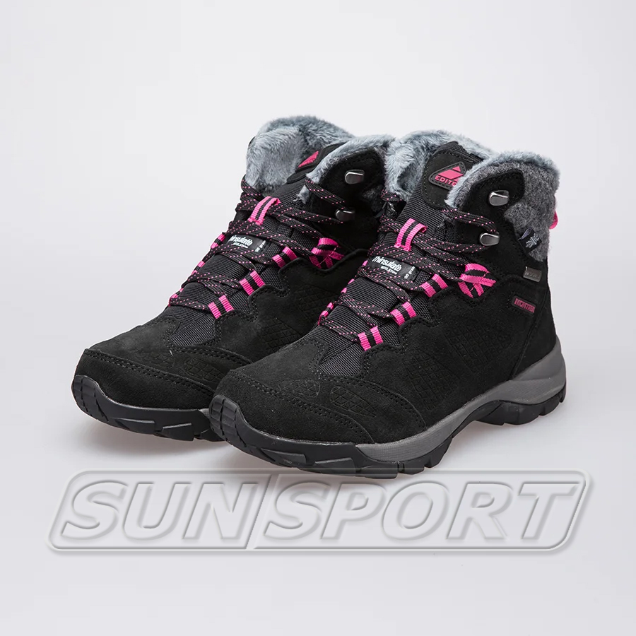 EDITEX MONTREAL это легкие, теплые ботинки для походов, прогулок и активного отдыха зимой и в межсезонье. Утеплитель THINSULATE не позволит ногам замерзнуть, а мембрана WWB SYSTEM защитит от попадания воды внутрь. Верх выполнен из износостойкой премиальной замши с водоотталкивающей пропиткой DWR. Интересной деталью верха является простроченная валяная шерсть на голенище ботинка. Специальная женская колодка для максимального комфорта на протяжении всего времени. Стельки ORTHOLITE обеспечивают отвод влаги от стопы и препятствуют возникновению бактерий и запахов. За амортизацию и комфорт отвечает промежуточная подошва EVA. Особый состав и рисунок протектора USP гарантирует устойчивость при перемещении по влажной, мягкой или рыхлой поверхности. Прочная шнуровка надежно фиксирует стопу.