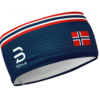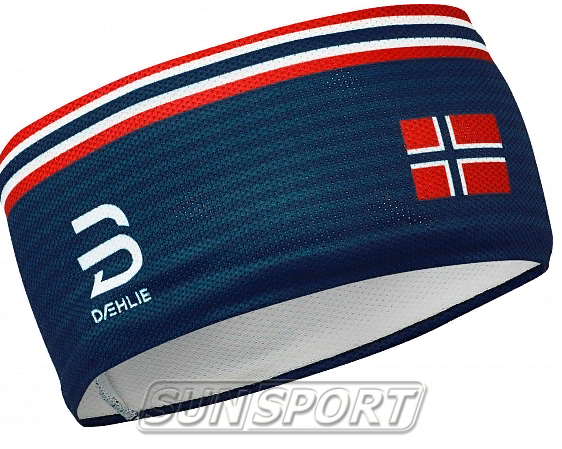 Функциональная повязка из сетчатой ткани. Отлично впитывающий и дышащий материал. Повязка украшена логотипом бренда и норвежским флагом.