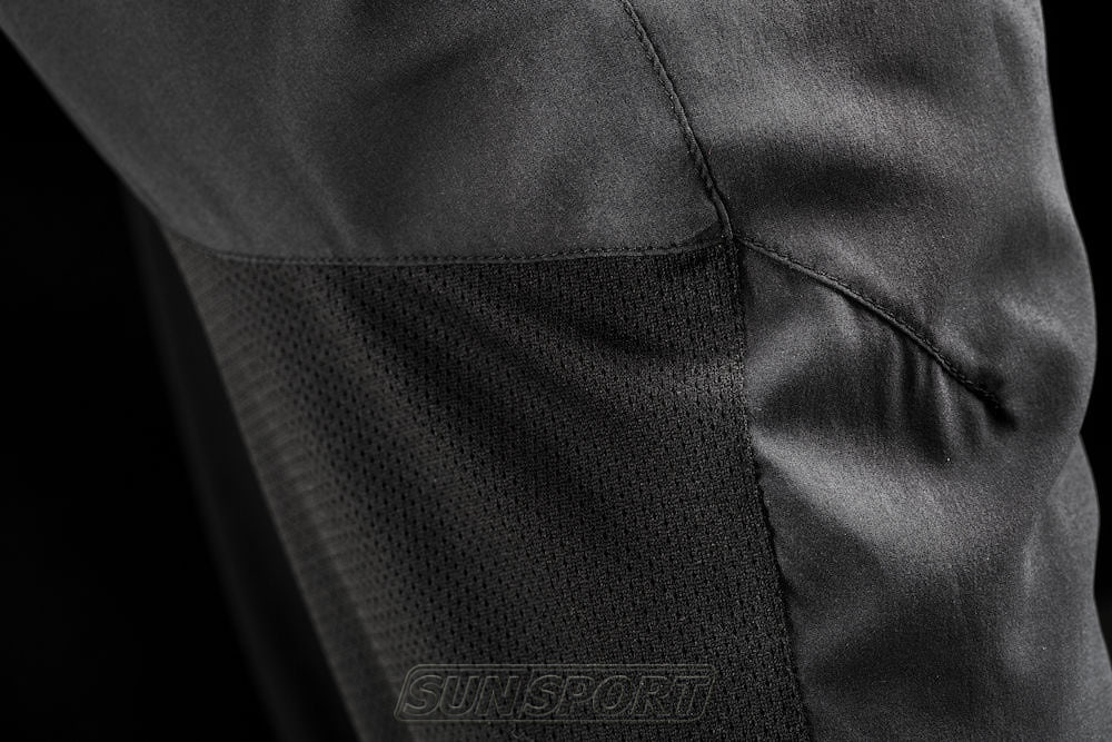 Высокофункциональный, легкий, дышащий материал. Сетчатые вставки в зонах с повышенным потоотделением. Анатомический крой в области колена.