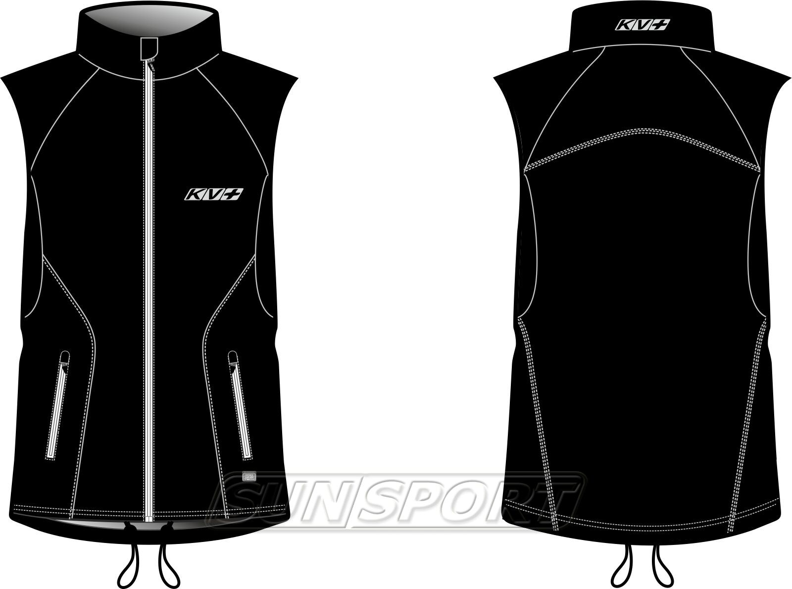 По нижнему краю жилета проходит регулировочный шнурок, который позволяет получить более плотную посадку, что исключает проникновение внутрь холода и ветра. Плоские эластичные швы стачивают детали кроя.
