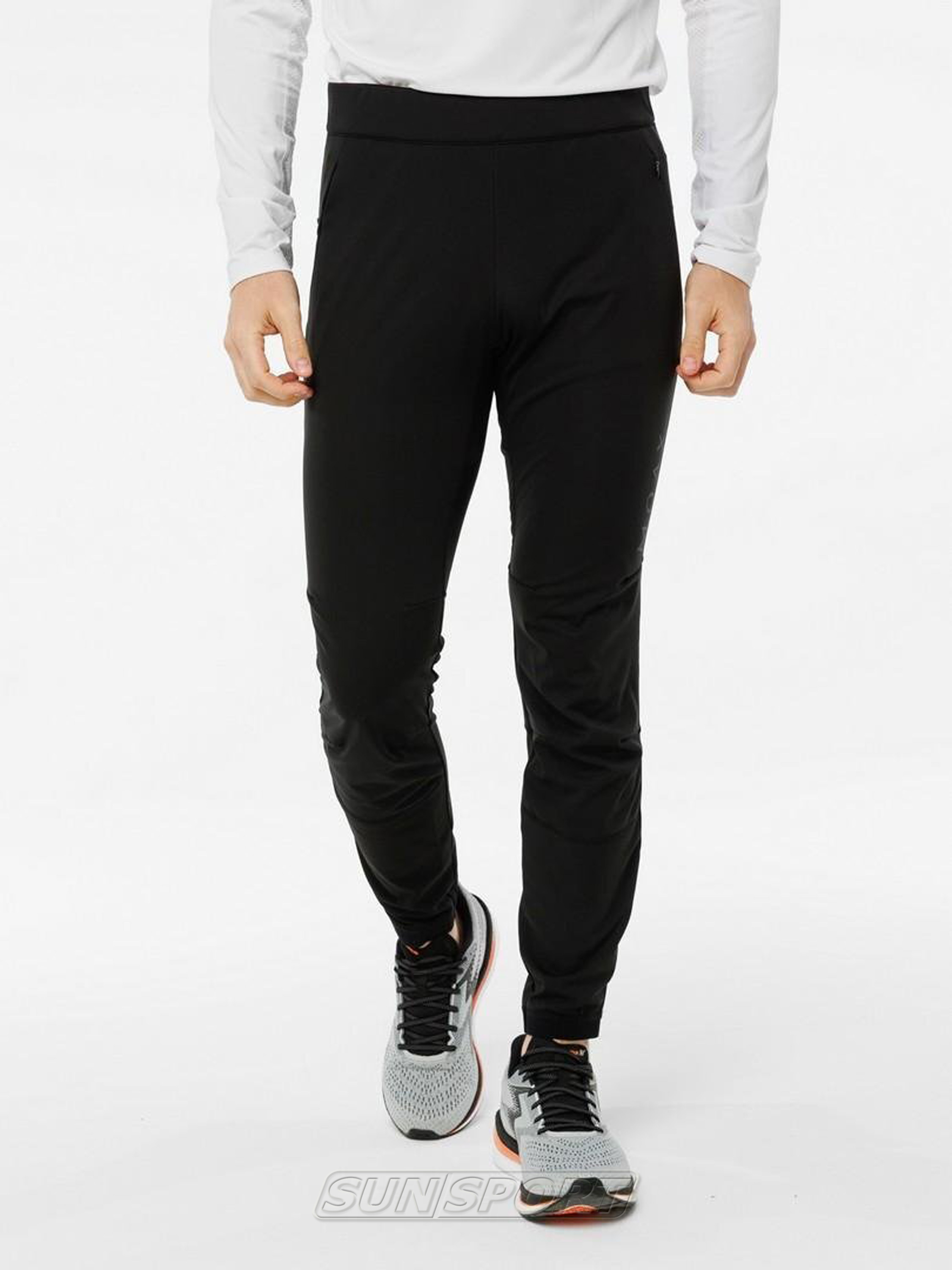 Брюки обеспечивают полную свободу движений благодаря эластичным материалам и анатомическому крою. Для удобства в модели предусмотрены два боковых кармана на молнии для безопасного хранения мелочей и один сетчатый карман сзади. Резинка в области пояса и внизу брючин гарантирует удобную посадку и плотное прилегание к обуви, защищая от попадания снега и холода. Дополнительная безопасность в тёмное время суток обеспечивается за счёт светоотражающих элементов.