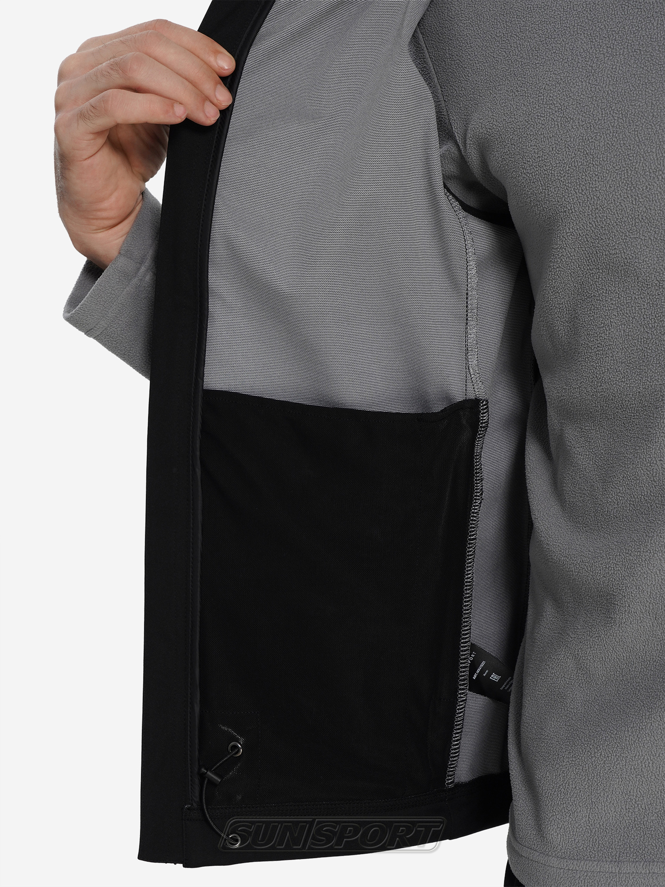 - Трехслойный софтшелл с трикотажной вставкой на спине для эластичности.