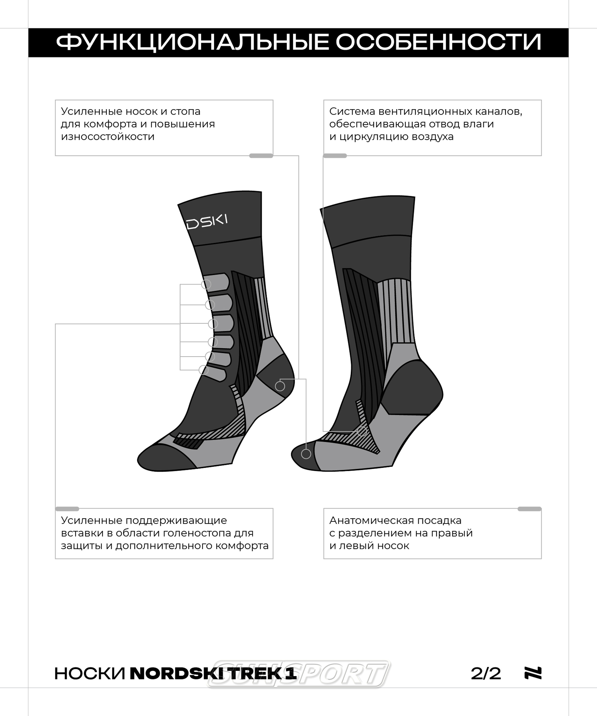 - Усиленные носок и стопа для повышения износостойкости и долговечности.