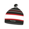 Шапка отличается стильным дизайном с поперечными цветными полосами и небольшим помпоном в тон. Фирменная вышивка логотипа добавляет акцент брендовости.