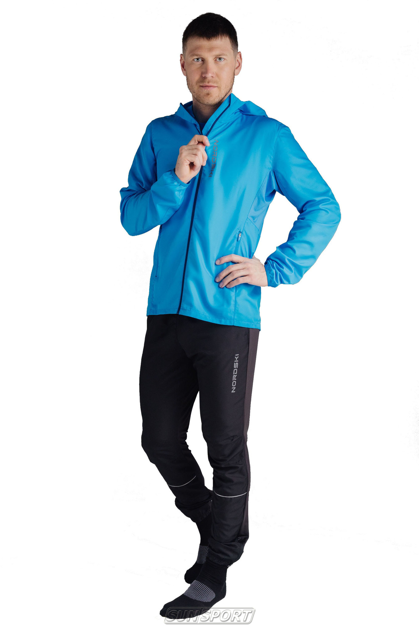- Ветрозащита: Передняя часть выполнена из легкой функциональной ткани, которая защищает от ветра, сохраняя дышащие свойства.