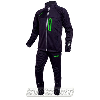 Разминочный костюм верхней линейки лыжной коллекции Nordski. Костюм предназначен как для профессионалов, так и для активных любителей лыжного спорта. Данный костюм изготовлен из материала Softshell - водонепроницаемый и дышащий материал с теплым внутренним слоем. Современный материал Softshell обеспечивает превосходную терморегуляцию, вентиляцию и отведение влаги. Костюм полностью адаптирован для российских погодных условий.