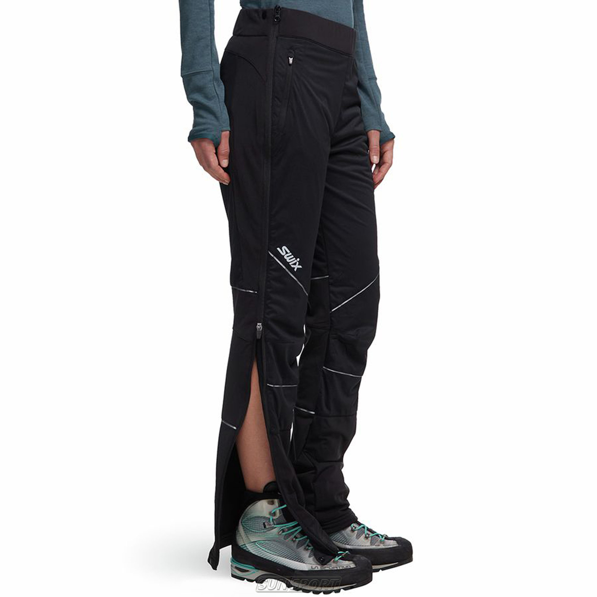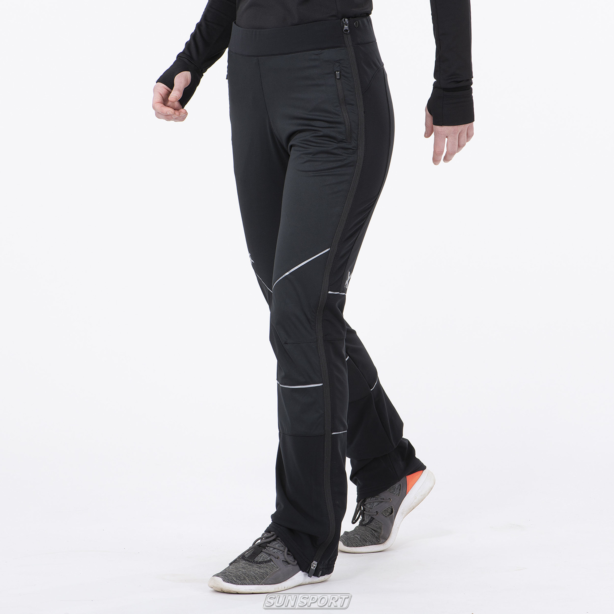 - Боковая молния по всей длине брюк помогает легко снять/надеть брюки, а так же переодеться. Можно использовать для разминки перед гонкой;