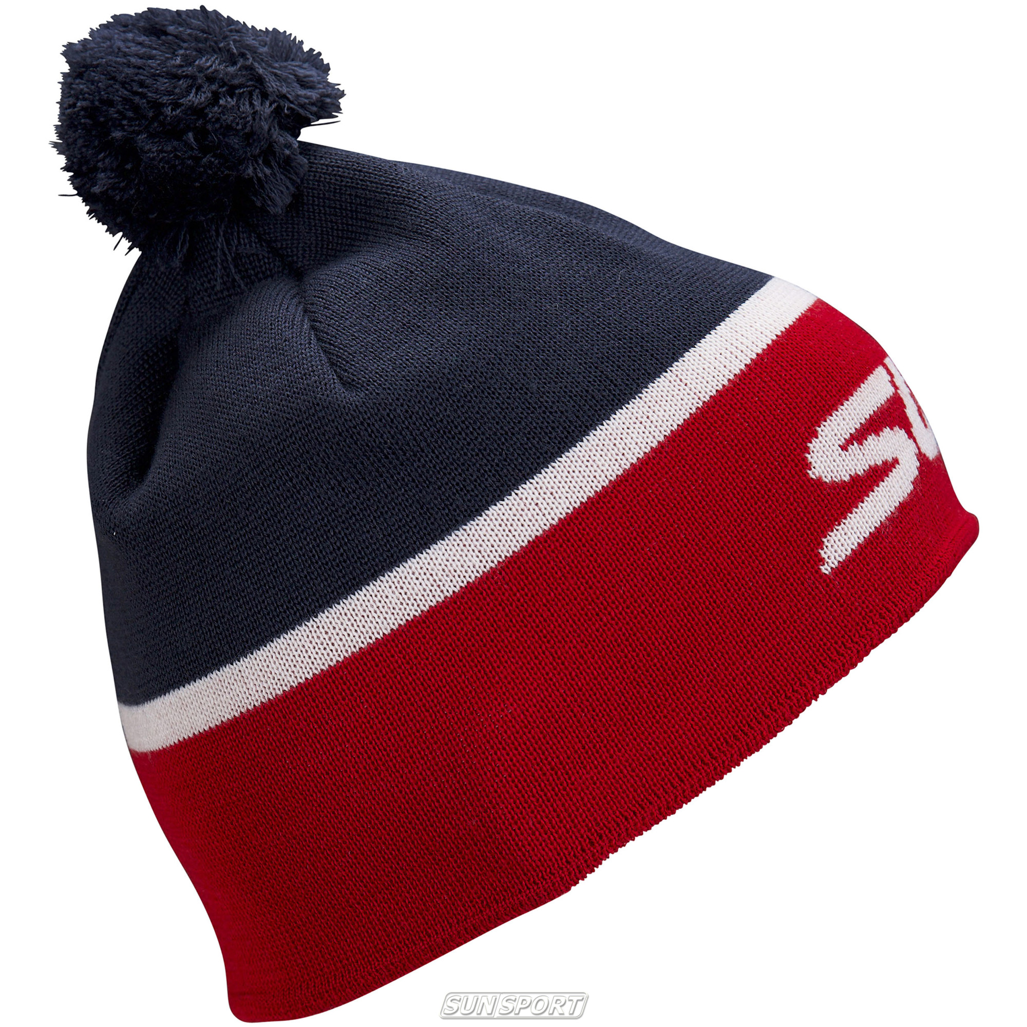 Теплая двухслойная шапка Swix из шерсти мериноса с помпоном, без подкладки.Связана без заднего шва с помощью круговой машинки.