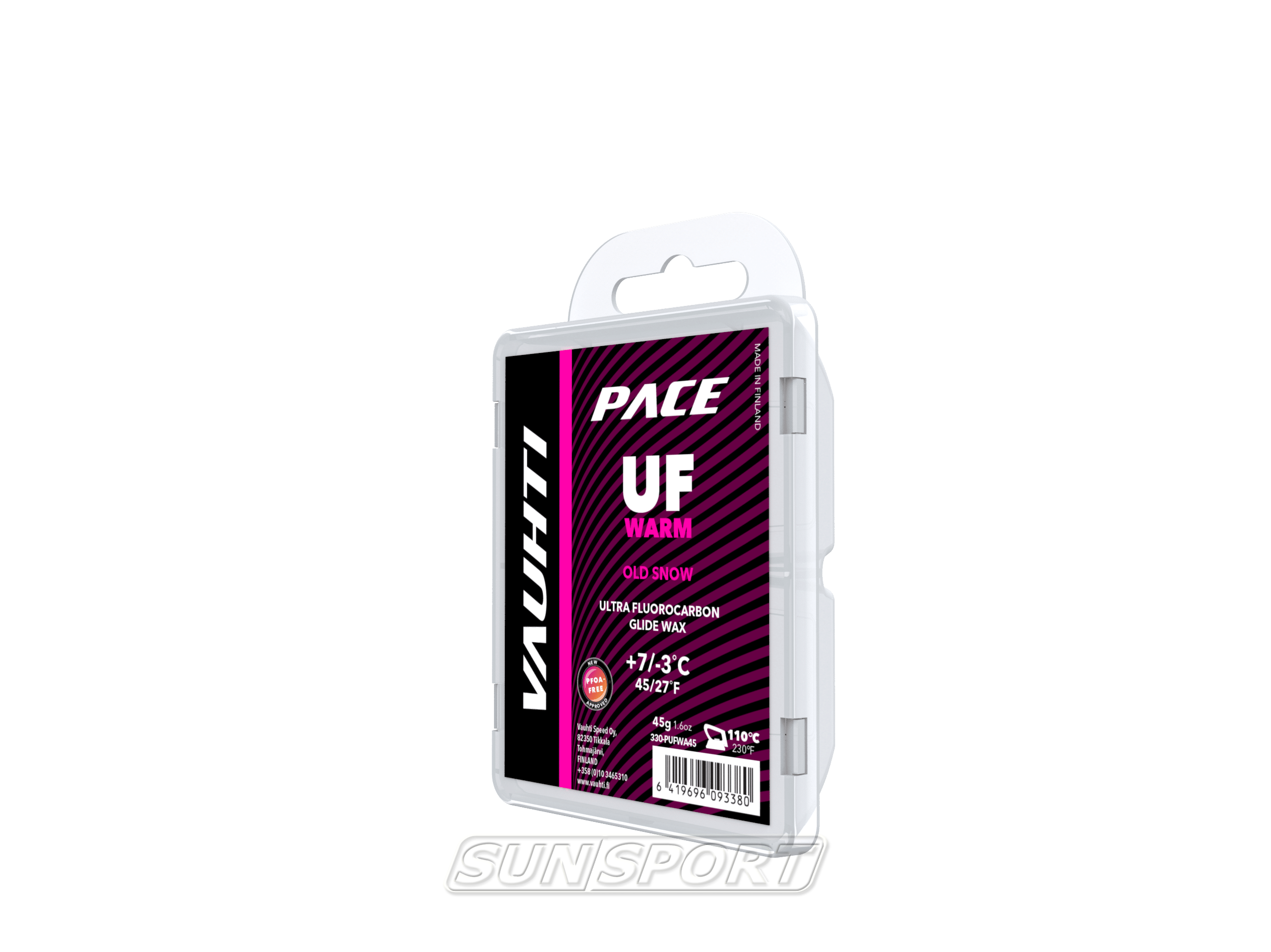 Серия Vauhti UF PACE. Набор восков высочайшего качества. Состав продуктов был выбран на основе точных лабораторных анализов и многочисленных полевых испытаний, особенно для старого снега и пушечного снега. UF WARM – специальный продукт для влажного, мокрого и грязного снега, особенно подходит для старого снега.