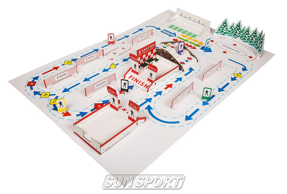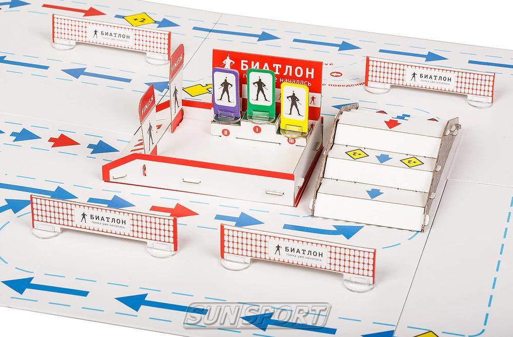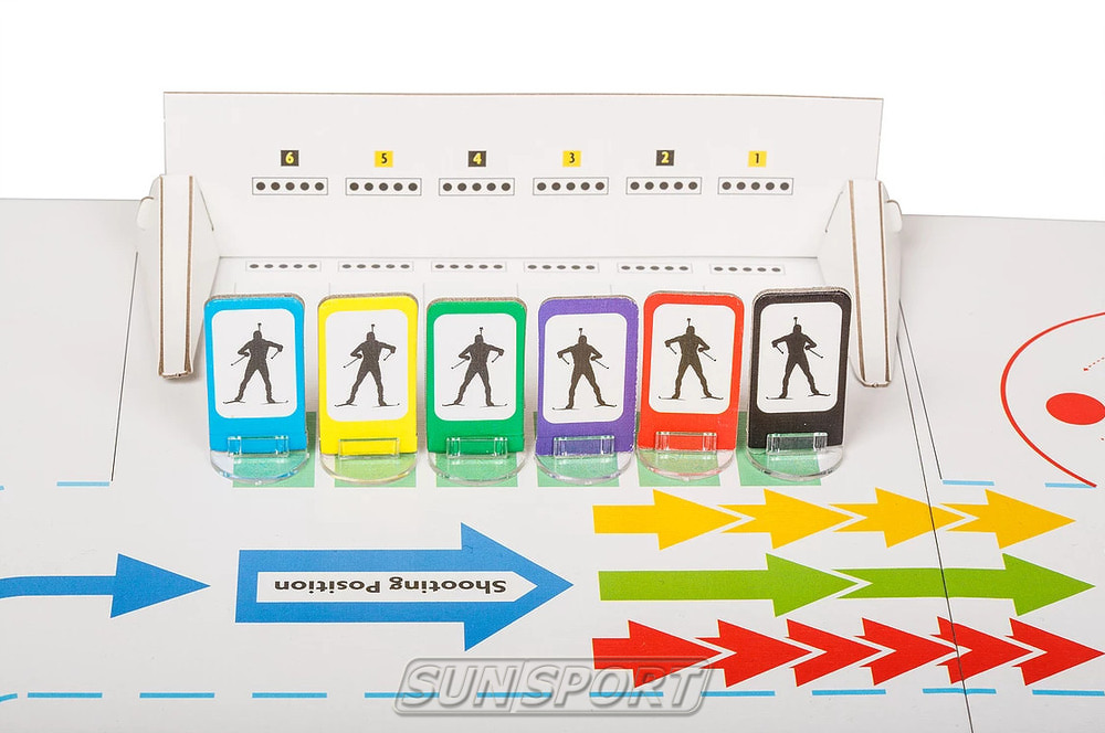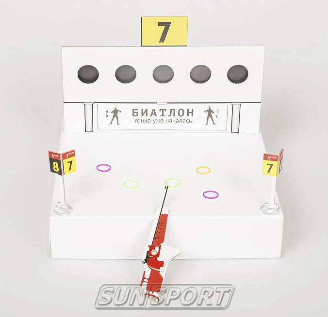 • соберите огневой рубеж, используя дно коробки, биатлонную установку и номера стрелковых коридоров;