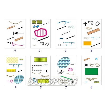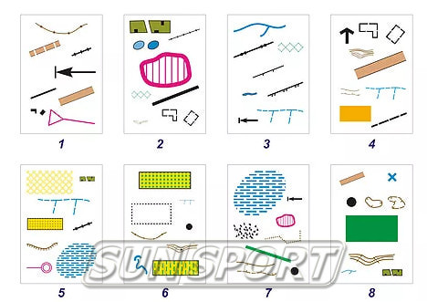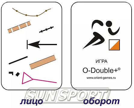 Комплект игры содержит карты с символами условных обозначений карт спортивного ориентирования. Каждая карта уникальна, но на каждой паре карт имеется одна (и только одна) общая для этих карт картинка. Именно на поиске этого совпадения и построена настольная игра О-Дубль. Кол-во карточек 55шт.