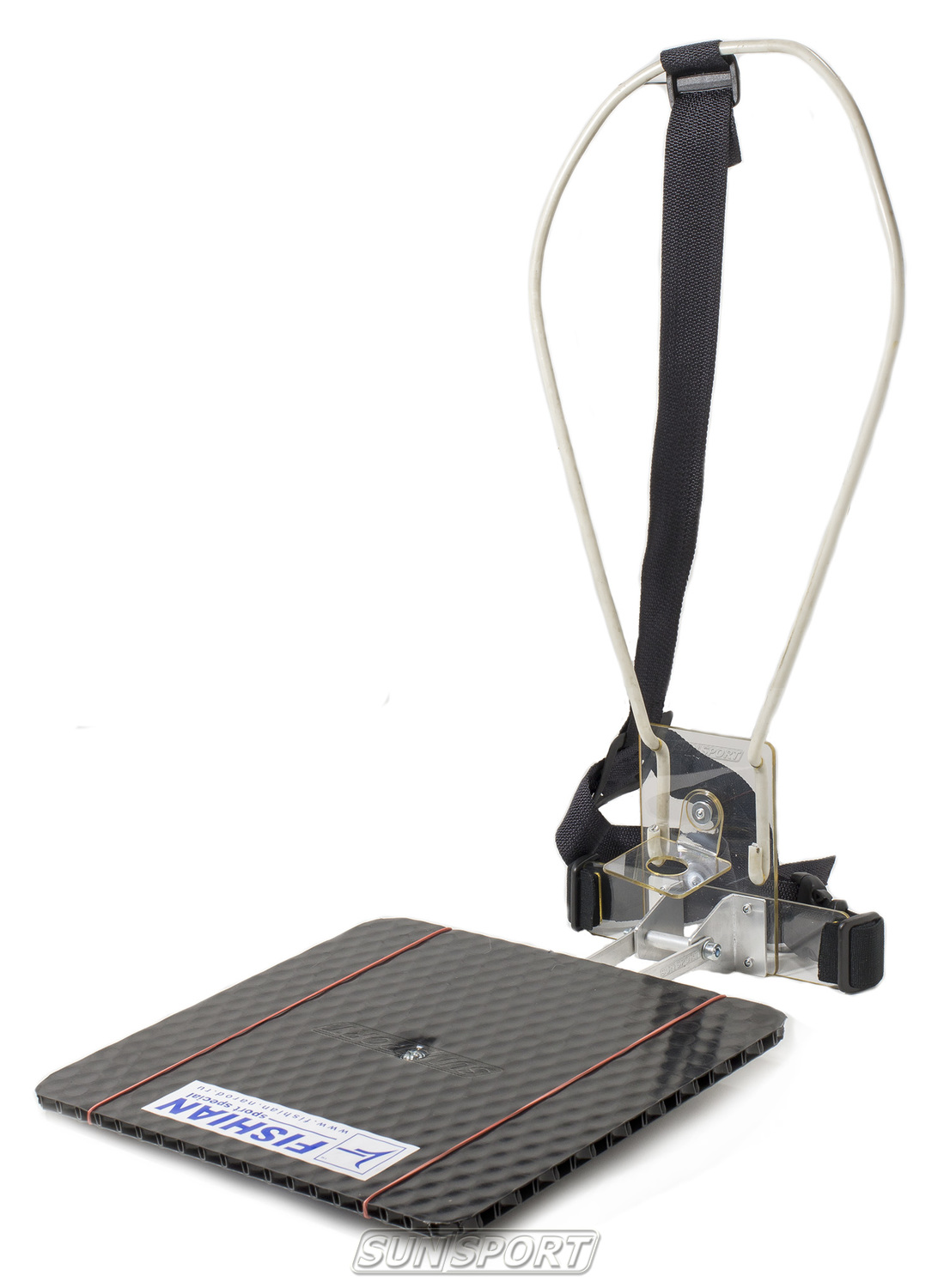 К грудине основания и проволочному ошейнику прикреплена обвязка из строп и резинок. Застежка типа«фаст» позволяет быстро и удобно зафиксировать планшет на груди спортсмена.