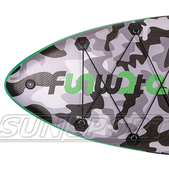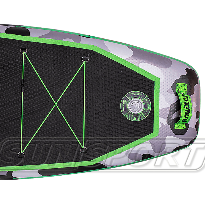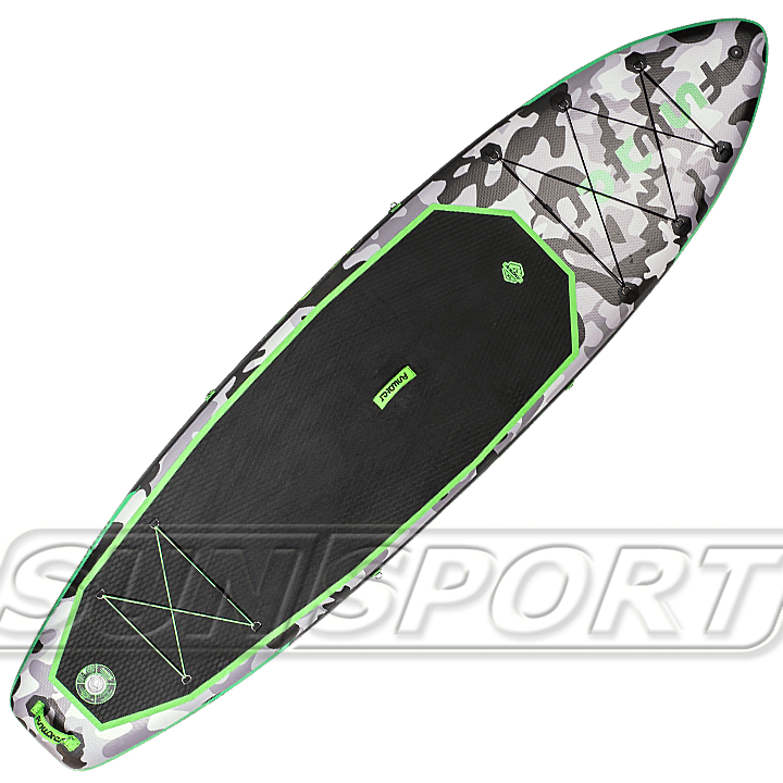 Сап выполнен в камуфляжной расцветке позволяющей меньше выделяться на природном ландшафте во время туристических прогулок. В модели целых две карго-системы (багажника) - четырехточечная на корме и шеститочечная на носу. Очень удобно, что в передней части доски размещено крепление для Go-Pro, сохраняющей эффектные кадры путешествий.