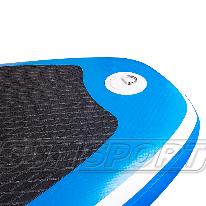 Четырехточечная карго-система (багажник) в носовой части надежно удержит груз на волнах. В передней части доски размещено дополнительное D-кольцо, позволяющее швартовать его у берега или выполнять буксировку по воде.